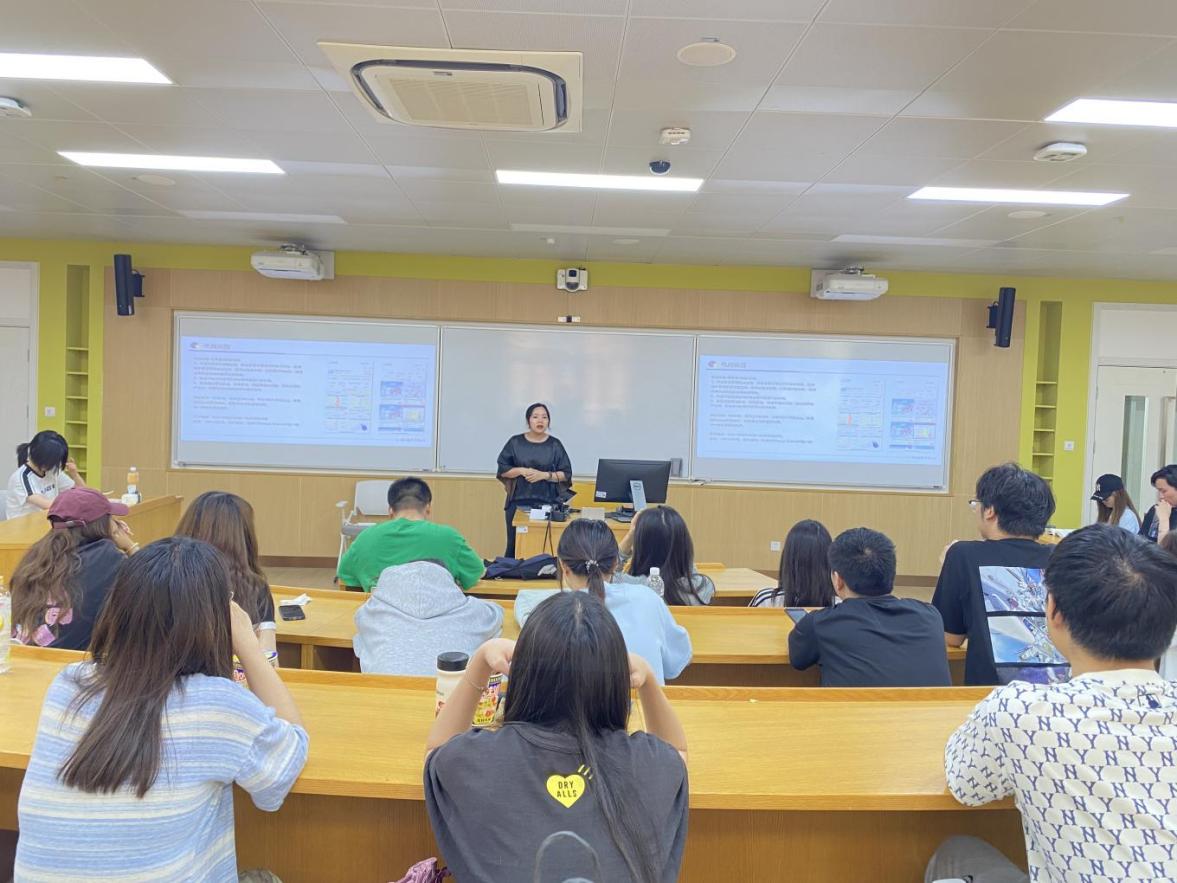 5月20日,蔓森——上海浙唐文化传播有限公司总经理在3305教室为85名学生介绍公司核心业务、发展规划、企业文化与福利待遇。互动环节中,总经理分享职场经验与求职技巧,众多学生现场提交简历,表达入职意愿。