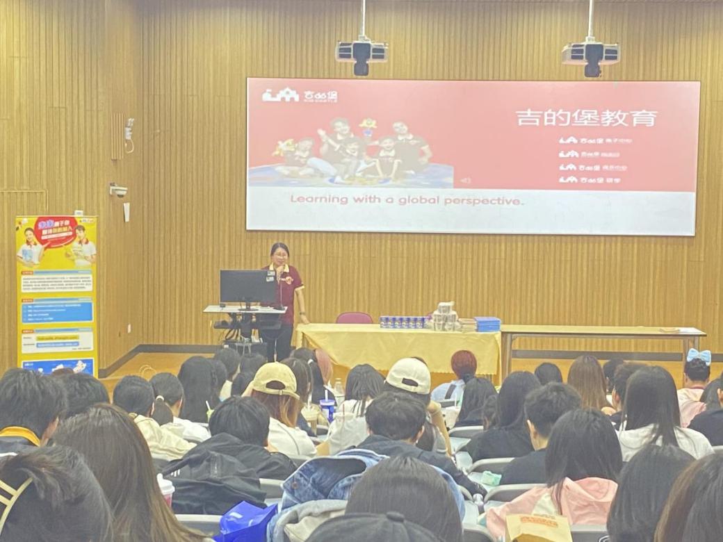 4月29日,上海吉的堡教育信息咨询有限公司人力资源部招聘科长王丽受邀宣讲,就公司岗位发展前景、企业文化等作详细介绍。宣讲结束后,多名同学投递简历。