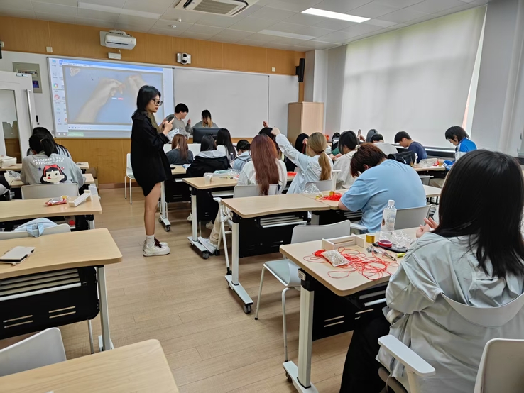以“指尖传承·编织解压”为主题的编绳手工艺体验同样人气高涨。在志愿者同学的指导下,参与者们学习编织手机链等小饰品。一根根彩绳在同学们手中翻飞,逐渐变成精美的工艺品。不仅让同学们体验到传统手工艺的乐趣,也培养了耐心和专注力。