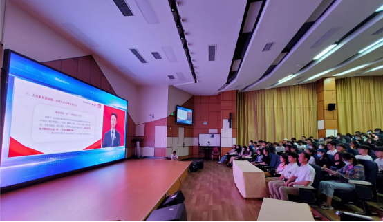 5月9日,学工部在知行楼组织百余名学生现场观看教育部社科司与人民网联合举办“同上‘四史’之‘新中国史’思政大课”课程直播。未到现场的学生们通过人民网、咪咕视频客户端在线收看。活动现场由党委学工部部长孙波主持。