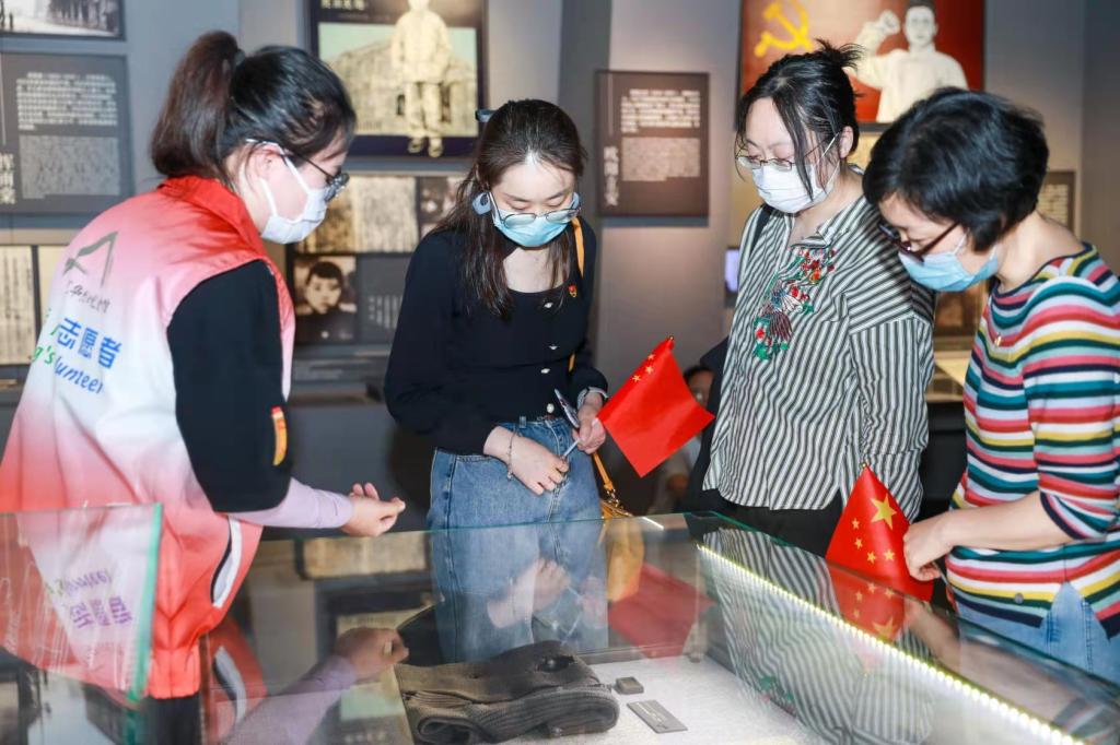 “起来!不愿做奴隶的人们!……”伴着国歌展示馆内的背景音乐,一件件浓缩红色记忆的文物、一张张定格历史的老照片、一段段新技术演绎的动人心魄往事,让党员教师更深刻地体会到在上海诞生的这首《义勇军进行曲》,它不仅仅只是一首歌曲,更是近代中华民族独立解放的战斗号角,深深融入我们的血液,化为中华民族的灵魂。