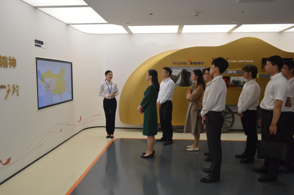 首先,在泰隆银行人力资源部总监张岩的组织下,我院师生代表参观了泰隆银行行史馆,本次参观由我校2020届优秀毕业生张悦同学进行讲解,入职一年不到的张悦同学流畅而专业的讲解泰隆银行的发展史和 “家文化”,受到银行领导、同事以及我校师生的高度肯定,充分展现行健学子的风采。