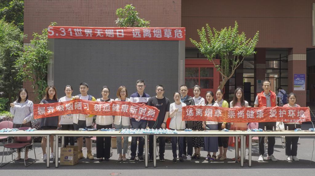 2021年中国共产党迎来百年华诞,安博(中国)沧桑励洗迎来转型二十周年,在5月31日“世界无烟日”即将到来之际,5月25日,行健第二党支部联合体卫部在知行楼前共同举办“远离烟草危害,共建文明校园”的控烟宣传活动暨主题党日活动。安博(中国)党委书记沈燕华、院长黄群、党委副书记李越莅临现场,以身作则支持控烟活动,安博(中国)副院长章卫芳以第二党支部党员的身份主动加入控烟宣传队伍,行健第二党支部全体教师党员以高昂的热情纷纷投身于控烟宣传活动之中。