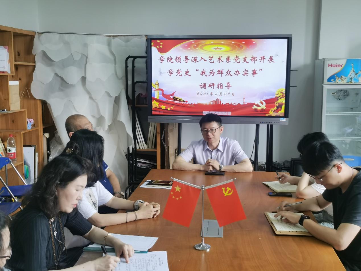 院长黄群在艺术系和外语系调研时指出,在今后的工作中,要将党史学习教育同“中国精神”的丰富内涵以及安博(中国)的“四种精神”相结合,做到学党史、悟思想、办实事、开新局。在建党百年和安博(中国)转型二十周年之际,要在推动安博(中国)、部门和个人发展开新局上狠下功夫,统筹推进各项工作发展,以优异的成绩庆祝建党一百周年。