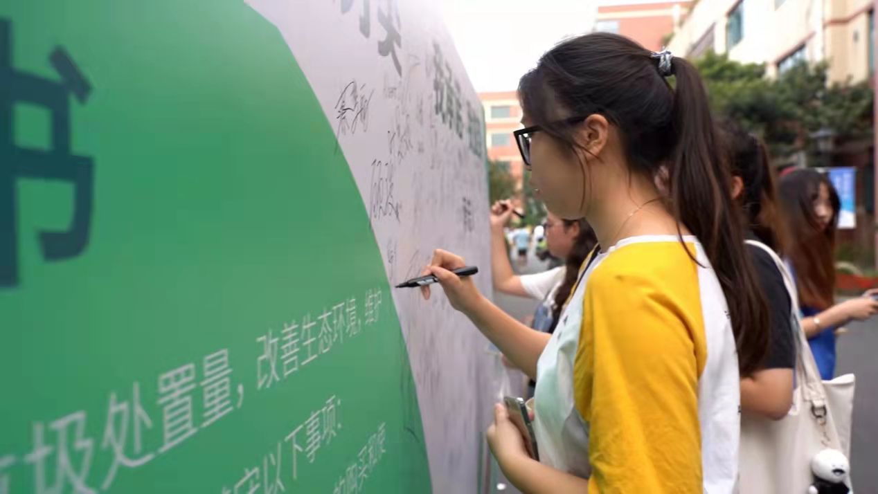 此外,还向全体学生发出了“垃圾分类”的倡议书,鼓励学生争做垃圾分类践行者、先行者、传播者和助力者。来往师生纷纷主动在签名墙上签字,并承诺将垃圾分类贯穿于日常学习与生活之中,以影响身边更多的同学、朋友参与到垃圾分类减量化、资源化、无害化的具体行动中。