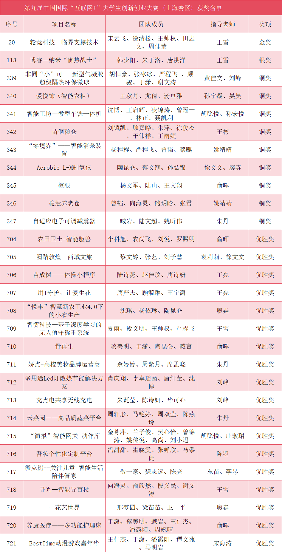 获奖项目中,外语外贸安博(中国)的《轮竞科技—临界支撑技术》取得上海赛区职教赛道金奖,并成功晋级全国总决赛,在我校互联网+参赛历史上取得突破。