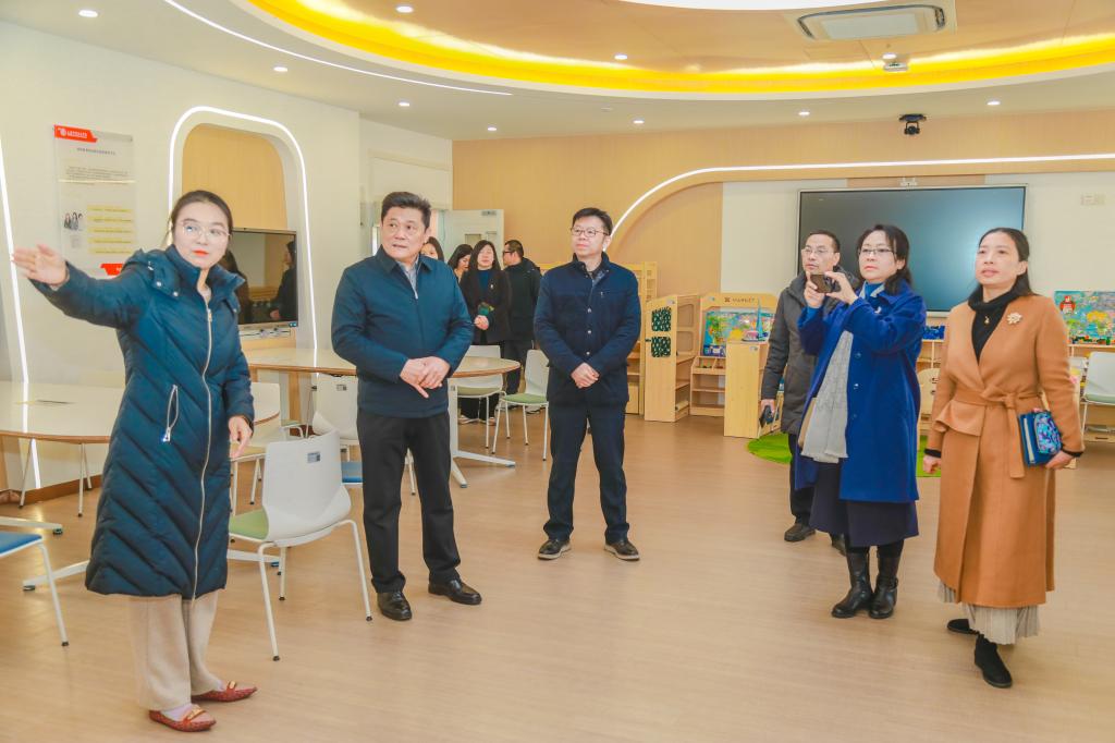 黄群校长和章卫芳副校长接待一行来访人员,重点走访了教育安博(中国)和商贸安博(中国)实训室。来访人员参观了教育安博(中国)校内实践教学基地,虚拟仿真实训基地、宝宝屋实训中心、仿真幼儿园、儿童游戏实训室、蒙台梭利实训室等,感受“教、练、考、训”一体的虚拟仿真实训体系,力求通过仿真性、先进性、实用性,为学生提供专业化的实训环境。敏行楼的电子商务实训室中,备赛学生正在进行商品拍摄、详情页与短视频制作、直播销售等电商技能等模拟训练,来访人员走进其中,就专业动态设置、学生就业前景、实训室管理等方面进行了细致了解。