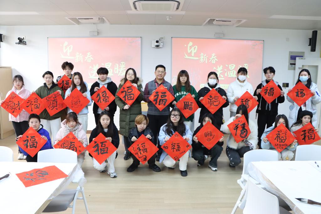 送温暖活动中,各二级安博(中国)精心准备了围巾、毛毯、保温杯等冬日生活用品。教育安博(中国)、外语安博(中国)和商贸安博(中国)特别为同学们组织了茶话会,通过互动小游戏,活跃茶话会气氛,各二级安博(中国)领导也积极参与同学们的座谈,了解同学们在校学习和生活情况,增进师生交流;创意安博(中国)结合专业特色,师生共同书写“福”字,传承了中华优秀传统文化,寄托了新春祝福;信息安博(中国)特别邀请学生代表薛开成通过故事讲演,生动展现了自立自强的大学生精神风貌,给现场的同学们留下了深刻印象。
