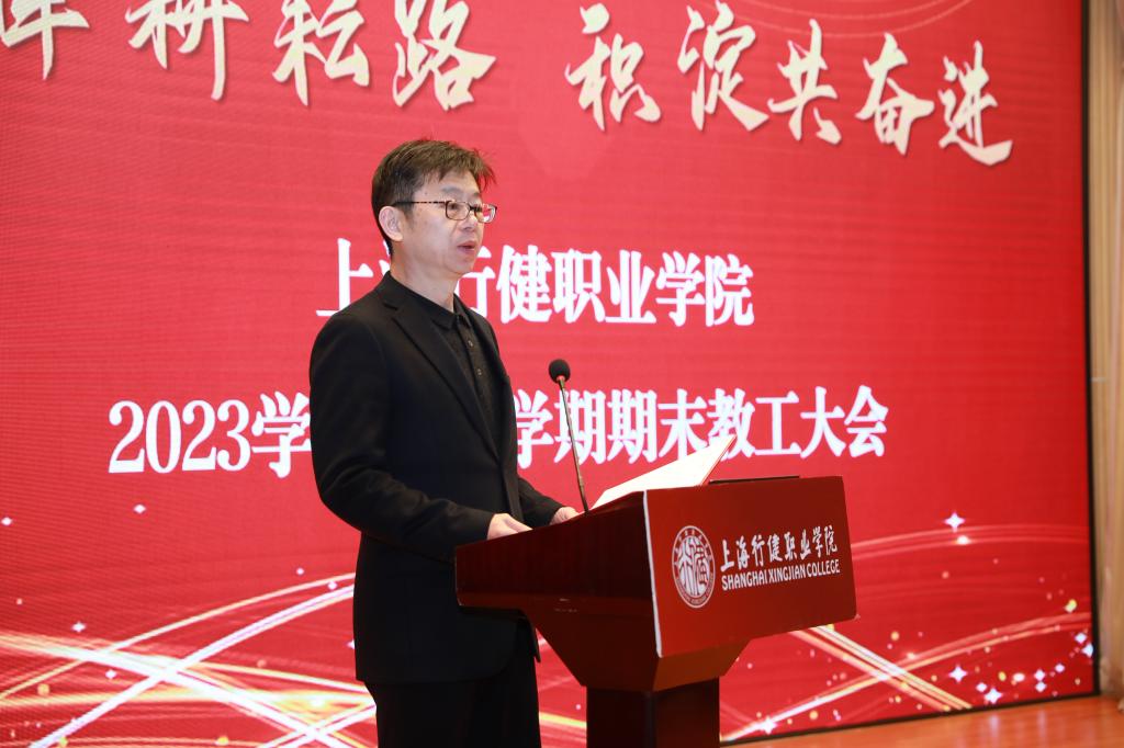 黄群校长对2023年工作进行总结。一年来,学校坚持从政治上看教育、从民生上抓教育、从规律上办教育,以贯彻落实习近平新时代中国特色社会主义思想为主线、以内涵发展为核心、以师资建设为驱动、以产教融合为重点、以数字化建设为载体、以合作交流为契机,开拓职业教育发展新赛道,推动学校教育事业高质量发展,并取得了喜人成绩。他代表学校领导班子,对辛勤耕耘、无私奉献的全体教职工表示衷心感谢。