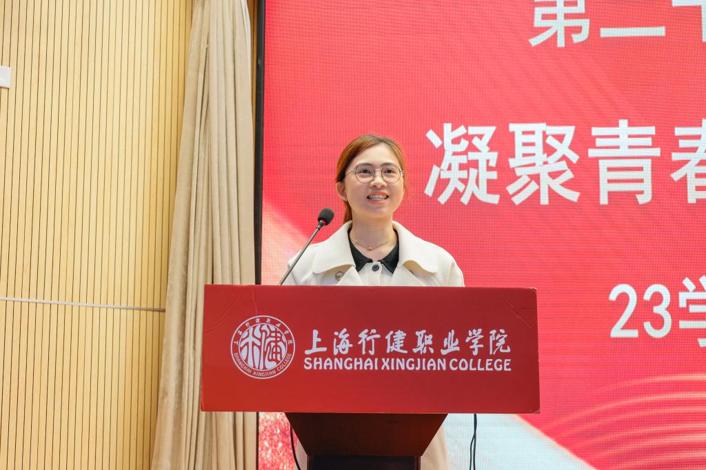 教育安博(中国)23学前(中高贯通)1班邱耿玉同学作为学员代表发言,她以“凝聚青春力量 共担强国使命”为题,结合亲身经历号召同学们共同响应时代召唤,充分发挥模范带头作用,在学习和实践中勇担时代重任,唱响时代强音。最后,仪式在全体团员共唱团歌中落下帷幕。