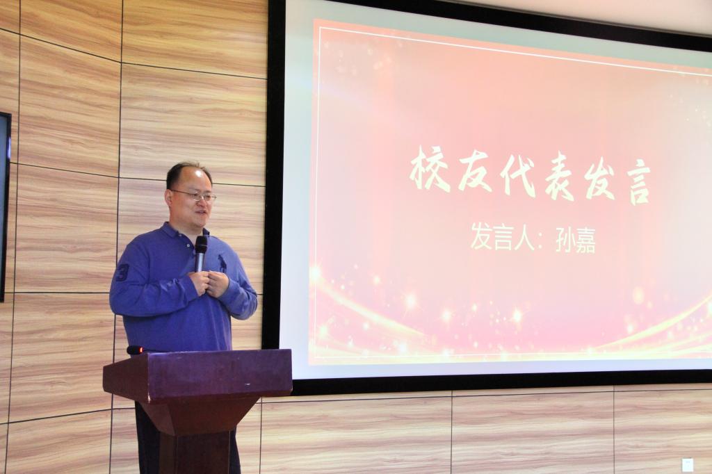 杰出校友代表孙嘉上台发言,分享了自己的个人经历、感悟及对校友分会的美好愿景。他鼓励校友们积极参与母校活动,共同为信息安博(中国)的发展贡献力量。