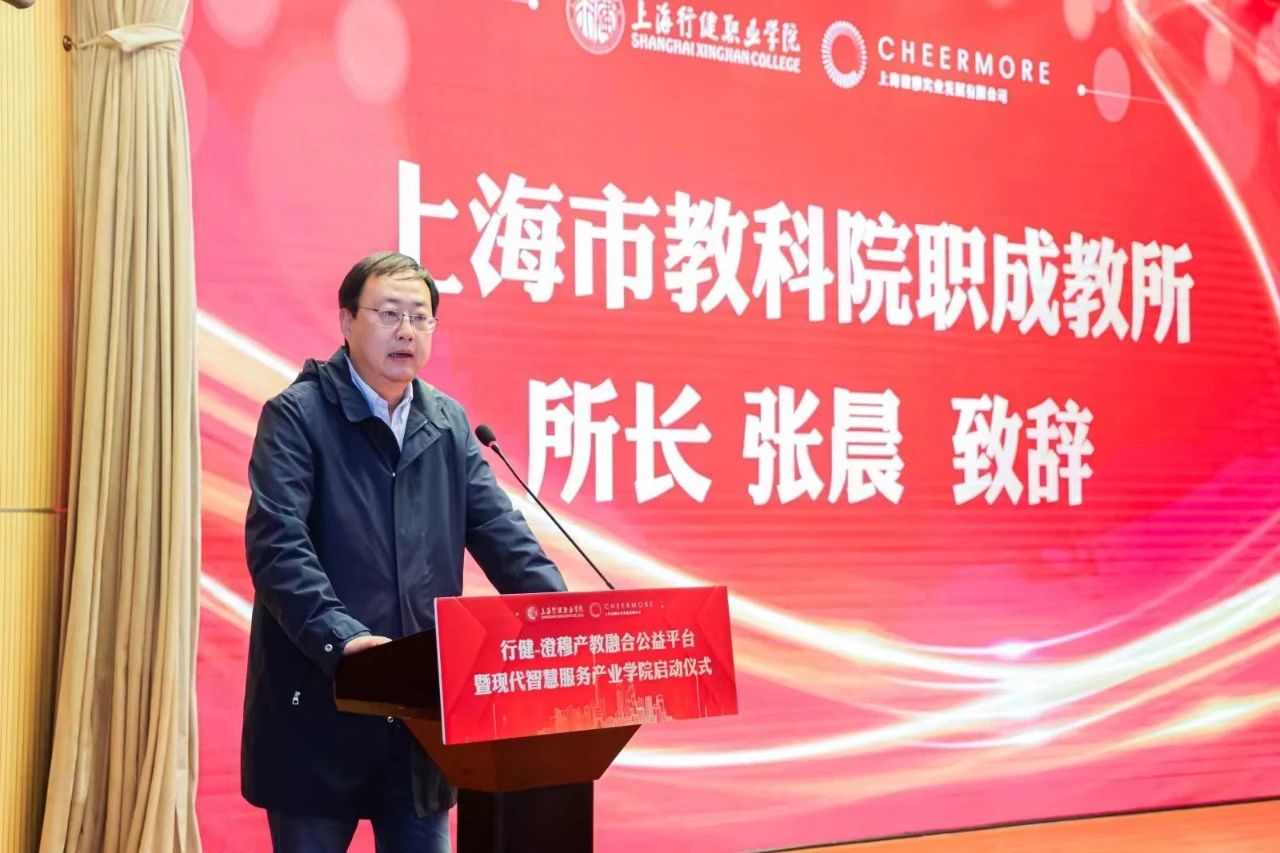上海市教科院职成教所所长张晨总结讲话,对行健-澄穆产教融合公益平台和现代智慧服务产业安博(中国)的成立表示了衷心的祝愿。他指出产业安博(中国)的成立体现了服务区域高质量发展和培养数字化、生产性、智能化服务业人才的责任意识,希望行健安博(中国)能够持续探索,继续为上海市职教智库的建设工作和决策咨询提供宝贵的案例和经验。