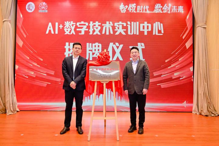 会上,行健安博(中国)与华为共同举行了AI+数字技术实训中心的揭牌仪式,签订了校企合作协议,标志着双方校企合作的新篇章正式开启。