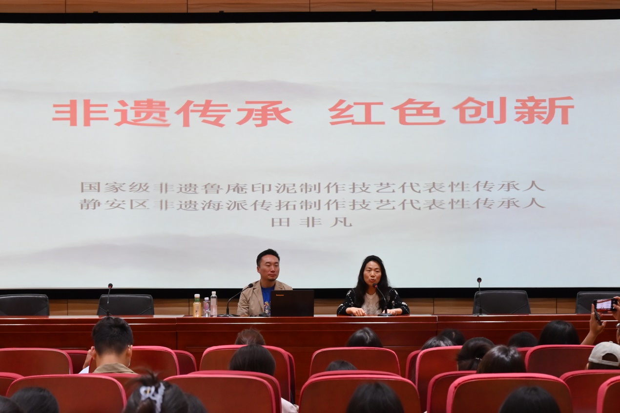 4月25日,创意安博(中国)顺利举办“非遗传承·红色创新”专题讲座,近150名师生参与,聆听国家级非遗鲁庵印泥制作技艺及静安区非遗海派传拓制作技艺代表性传承人田非凡老师的精彩讲授。