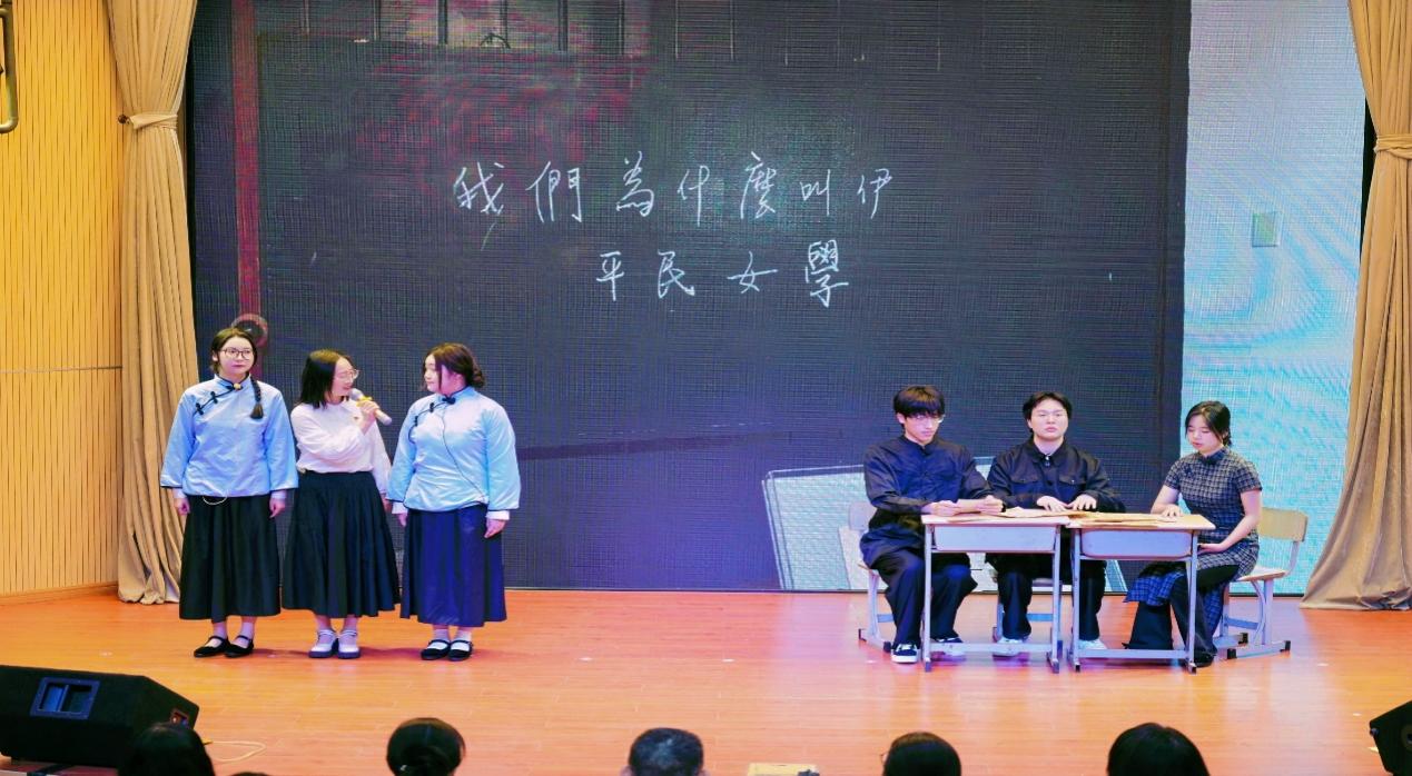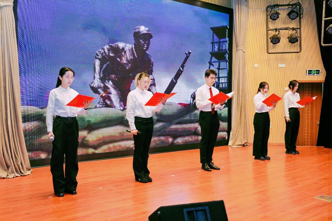 活动在庄严的国歌声中拉开序幕。大会共分为不忘初心、笃志砺行、挺膺担当三个篇章,同学们用诗朗诵、舞台剧、情景党课、故事宣讲等形式,以青春之名、用铿锵之音讲述成长故事,将拳拳赤子心熔铸成有力誓言,生动诠释了“青春为中国式现代化挺膺担当”的主题。