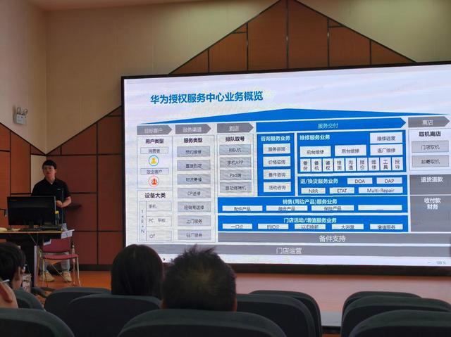 培训围绕华为授权服务中心展开,内容丰富多元。从服务中心介绍入手,讲解门店布局,明晰各岗位与用户互动区域;呈现业务概览,涵盖自助客户、服务渠道、到店及服务交付等全流程。