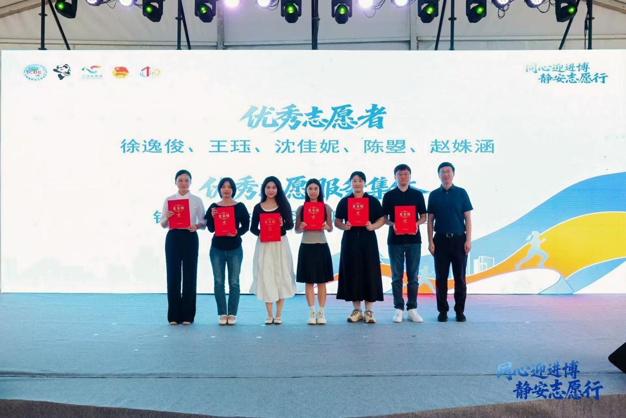 10月17日,苏河工场隆重举行“同心迎进博 静安志愿行”——2025年静安区“迎进博”志愿服务主题活动暨“活力苏河 益路同行”志愿健康跑活动。活动中表彰了在第七届中国国际进口博览会中表现突出的志愿服务集体与个人。其中,我校教师陈曌与学生沈佳妮因在第七届进博会期间担任专业志愿者,并以出色的服务表现和专业素养,荣获“第七届进博会优秀志愿者”称号,展现了行健师生卓越的精神风貌与高度的社会责任感。