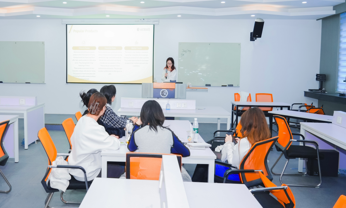 杨婧雯老师则以"中外电商的文化碰撞"为课题,向学生们介绍了中国电子商务的概况和中国时下流行的各类电商平台对中国电商四个时代的变化进行了深入分析通过中法两国电商平台的对比,杨老师引导学生们思考文化对于电商运营以及决策的影响学生们对中法两国电商的未来发展趋势进行了激烈讨论和分析。