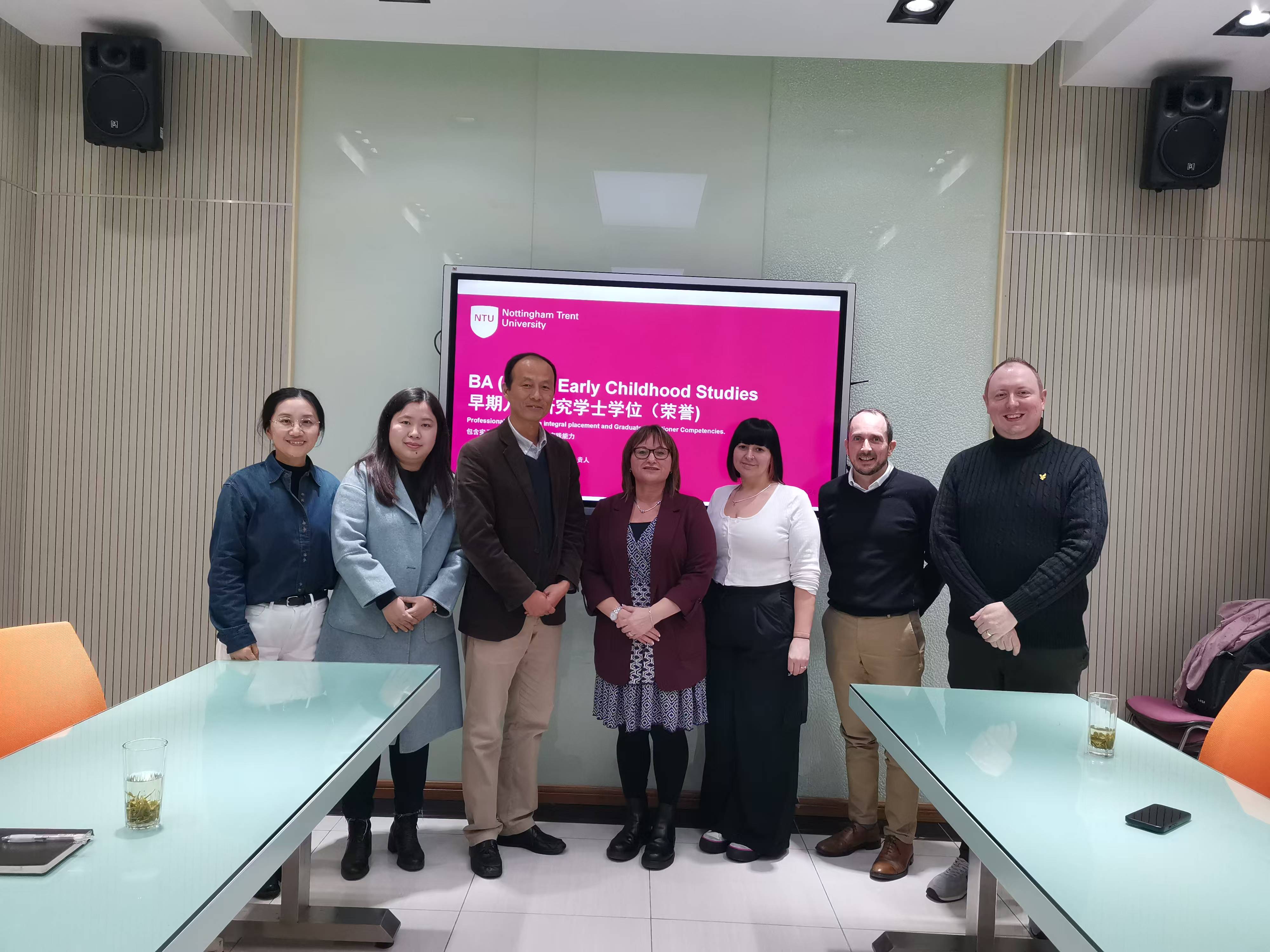 12月5日,英国诺丁汉特伦特大学国际合作部外事主任Chris Crabot携早期儿童研究专业负责人Aaron Bradbury、早期儿童研究课程负责人Kerry-Ann Rawson、早期儿童研究实训负责人Stella Smith一行到访我校。