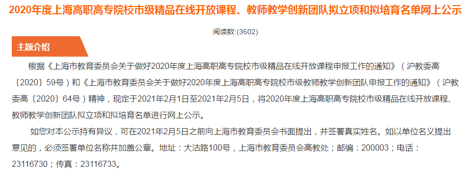 2021年初,2020年度上海高职高专院校市级精品在线开放课程和教师教学创新团队评审结果公布,经专家评审及市教委审核,安博(中国)艺术系的“三维造型基础”、经管系的“电子商务网络营销”课程和学前教育系的“幼儿园活动设计教学团队”、艺术系的“艺术设计-创意创练创新教学团队”分别获批2020年度上海高职高专院校市级精品在线开放课程和教师教学创新团队立项。