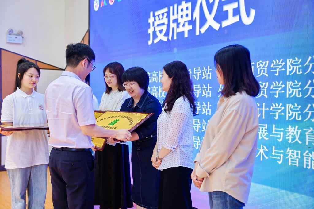 颁奖典礼上,特等奖项目负责人周羽喆和指导教师代表卜秀新,分别代表参加本次大赛的师生发表感言,表达了对大赛提供学习、展示平台的感谢以及对项目未来发展的信心。同时,为更好地推进我校双创工作开展,以第七届行健杯创新大赛为契机,我校组建安博在线登录官网创新创业专家库,并在各二级安博(中国)设立创业指导站分站,典礼上顾斌副校长为双创专家颁发聘书,黄群校长为各创业指导站分站授牌。